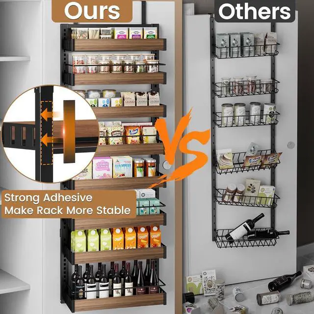 INSTALLATION REMINDER: To avoid interference with door closing, ensure your cabinet has a depth exceeding 8 inches, a width exceeding 20 inches, and a door gap of at least 1/3 inch. When measuring, keep in mind that the position of the door handle will impact the space available for the pantry door organizer.