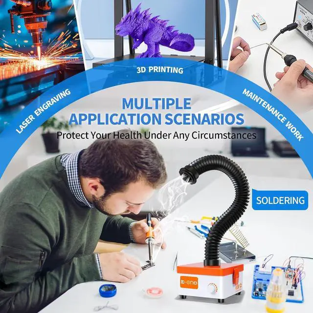 Multi-level Wind Speed Adjustment: Offers multiple adjustable wind speed settings; Adjust the suction power based on the level of smoke in your workspace, improving efficiency and creating a cleaner environment