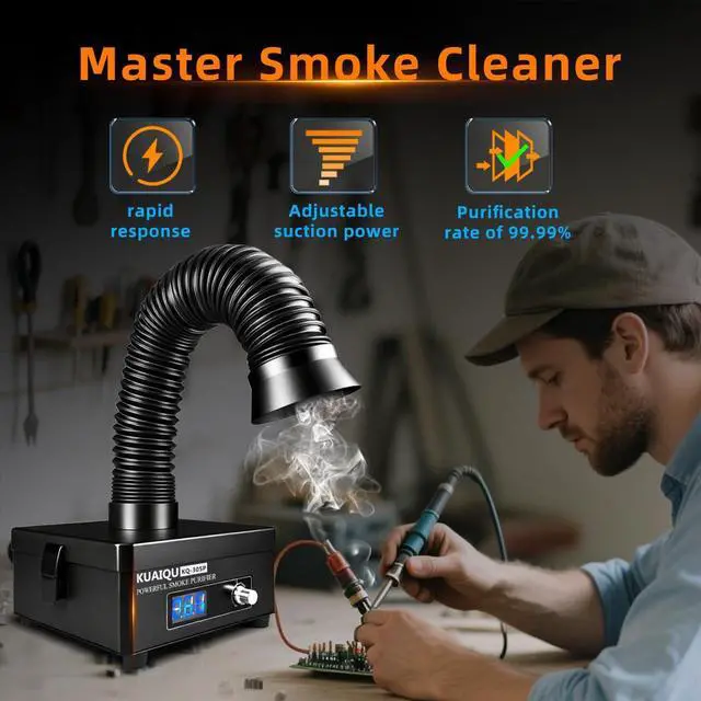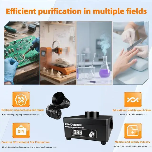 Application: The fume extractor features a brushless motor, delivering strong suction and higher negative pressure for exceptional performance across various applications. Ideal for soldering, nail salons, DIY welding, it efficiently captures harmful particles and fumes. Combining powerful extraction with energy-efficient operation, it ensures a cleaner and healthier workspace