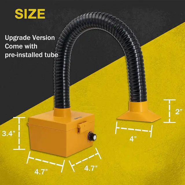 Adjustable optimized 6000 RPM high suction fan is low noise and allows you to remove fumes 5-6 inches away. The fan speed is adjustable. Suction: 40W, 6000 RPM, 52CFM, Noise Level: 55dbm, Life Expectancy: 50,000 hours, Static pressure: 125mmH2O.