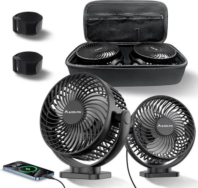 [Upgraded 2X Magnet] 2-Pack Magnetic Golf Cart Fan Rechargeable with Carrying Case, Battery Operated Portable Fan with 3 Speeds, Magnetic Base, Suitable for EZGO Club Car Yamaha, Golf Cart Accessories
