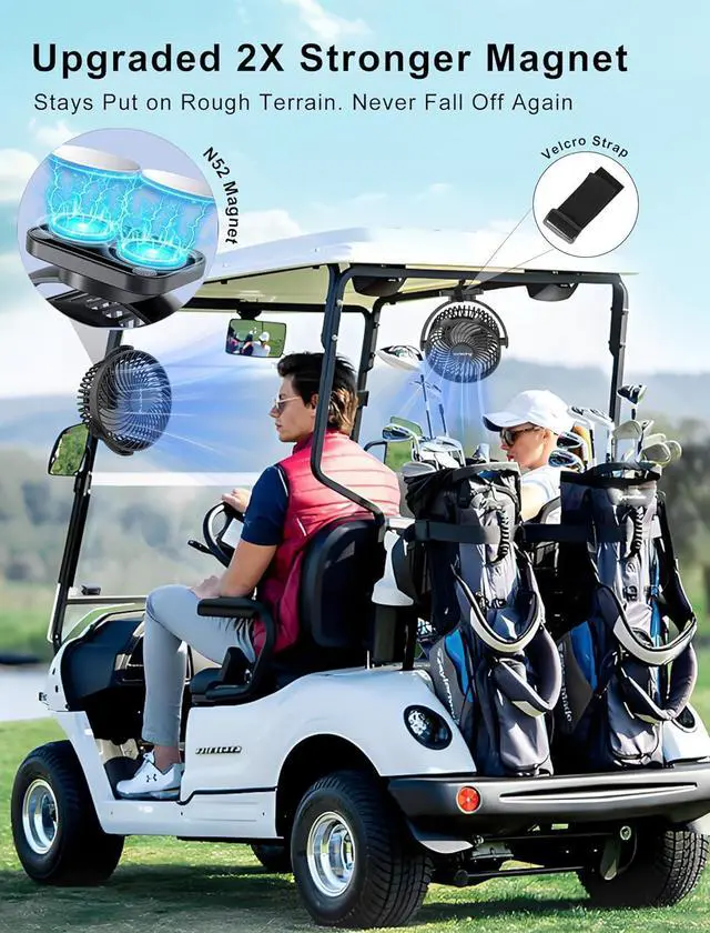 Ultra-Quiet Operation with Powerful AirflowDesigned with a high-performance brushless motor and aerodynamic fan blades, this magnetic fan delivers strong and steady airflow with minimal noise. With three adjustable speed settings, it meets all your cooling needsmaking it an essential golf accessory for the course, clubhouse, or outdoor activities.