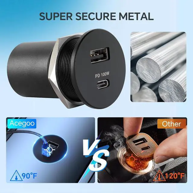 16AWG Wiring & Multiple Protections: 16AWG heavy-duty wiring ensures stable 100W output while keeping you and your devices safe. The Car USB Chargers built-in smart chip protection (including short-circuit, overheat, and overcharge safeguards) shields both your devices and your vehicles electrical system