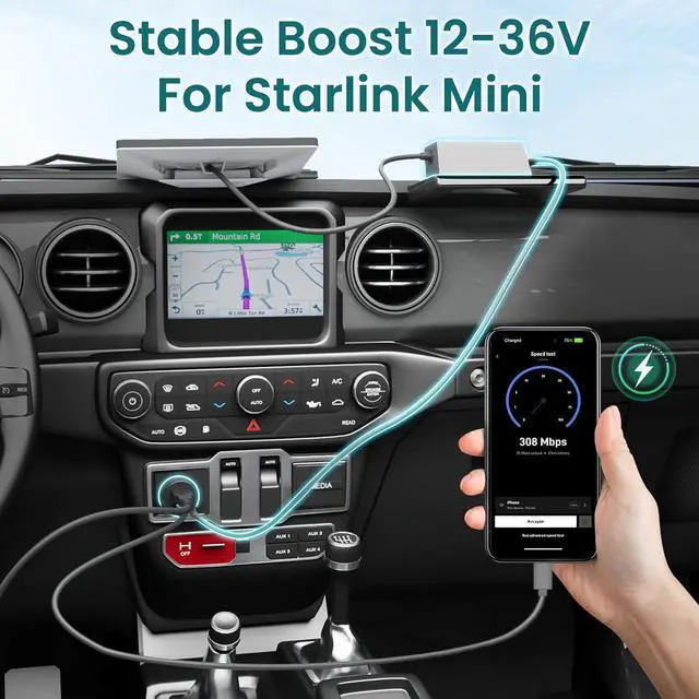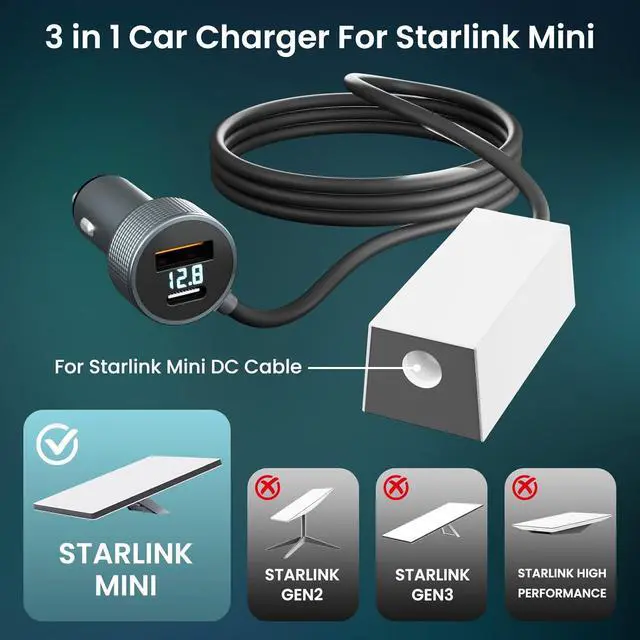 [Real-Time Voltage Display]: This fit for Starlink Mini car charger with digital voltage monitor lets you track your vehicles battery in real time, helping prevent over-discharge. For reliable performance, keep voltage above 12.8V and start the engine if it drops below 12.3V, to ebsure stable connectivity for RV trips, camping, and on-the-go internet access.
