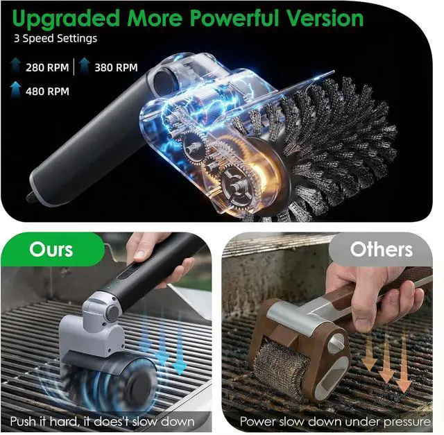 No shedding: Tough stainless steel bristles are locked in place with an upgraded interlock design to prevent breakage or shedding. No more picking bristles off your grilljust a thorough, reliable clean with this electric grill cleaning brush.