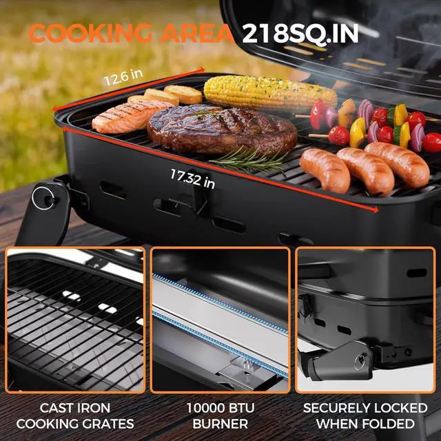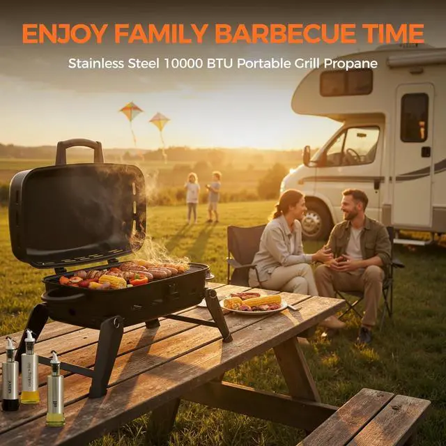 HEAT CONTROL: Our tabletop gas grill features an easy-to-adjust heat knob, ensuring an even cooking process at the desired temperature. Whether searing steak, slow-roasting chicken, or lightly toasting bread, you can easily control the heat for delicious results.