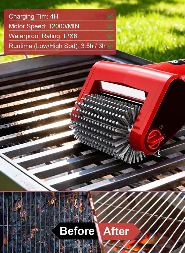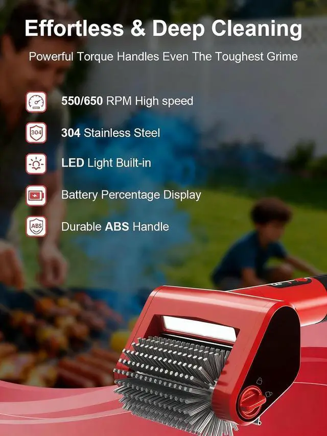 LED Light & Battery Indicator: Features a bright built-in LED light that illuminates every corner of the grill, plus a clear battery indicator that shows remaining power at a glanceno more guessing when to recharge.