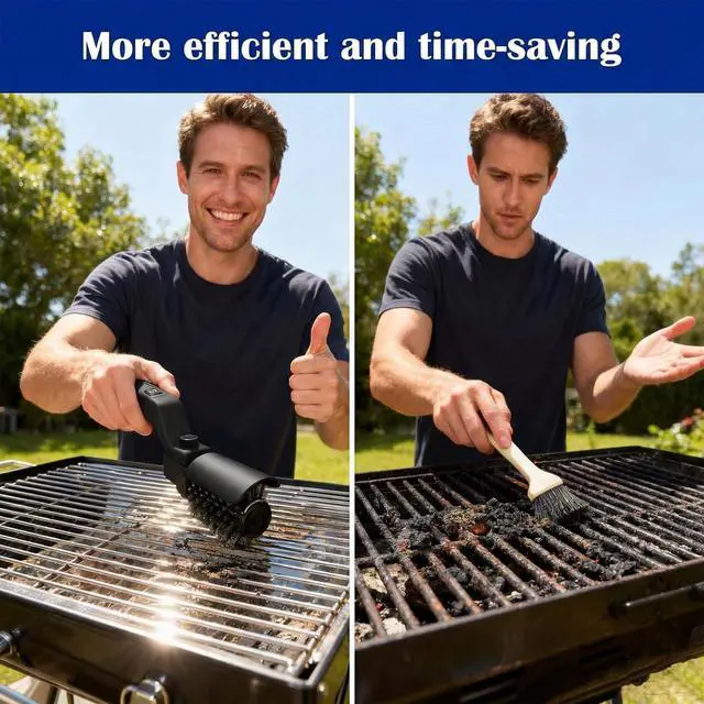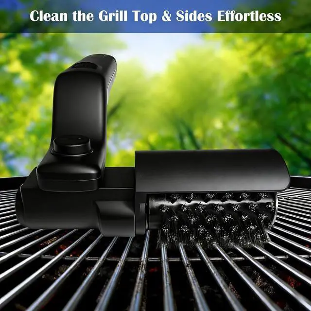 Versatile Brush Heads & Time-Saving DesignIncludes 2 interchangeable heads: stainless steel for tough stains on metal grates and polishing brush head for gentle cleaning on non-stick surfaces. No preheating or manual scrubbing neededsimply power on, adjust the speed, and let the brush do the work. Perfect for BBQ enthusiasts, campers, and anyone who hates tedious grill cleanup.