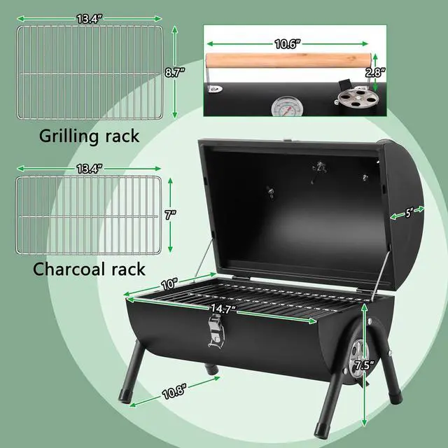 [Compact Outdoor Grill] - Small size of this BBQ grill can provide great portability for outdoor activity, Put it in your trunk easily and you can take it anywhere for camping, picnic, fishing, beach barbecue, cookouts, RV trip, patio grilling, backyard party, Come with long wooden handle for easy carry, Also perfects for tabletop barbecue or keeping foods flavor on the table, A must have for familys party