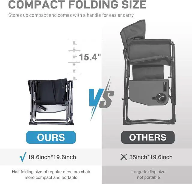 EASY TO SET & CARRY: No assembly needed, all you need to do is to pull the frames apart. Comes with a carry handle, after folding the folding directors chairs outdoor you can easily find it, which provides a great portability.
