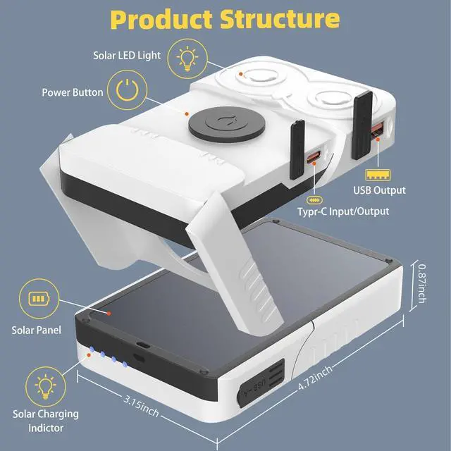 • High-Efficiency 18W PD Fast Charging with Dual Outputs Equipped with a built-in 5000mAh rechargeable lithium battery and a high-efficiency solar panel, providing stable 18W PD fast charging via both USB-A and USB-C ports. Keeps your devices powered anywhere no wall outlet needed.