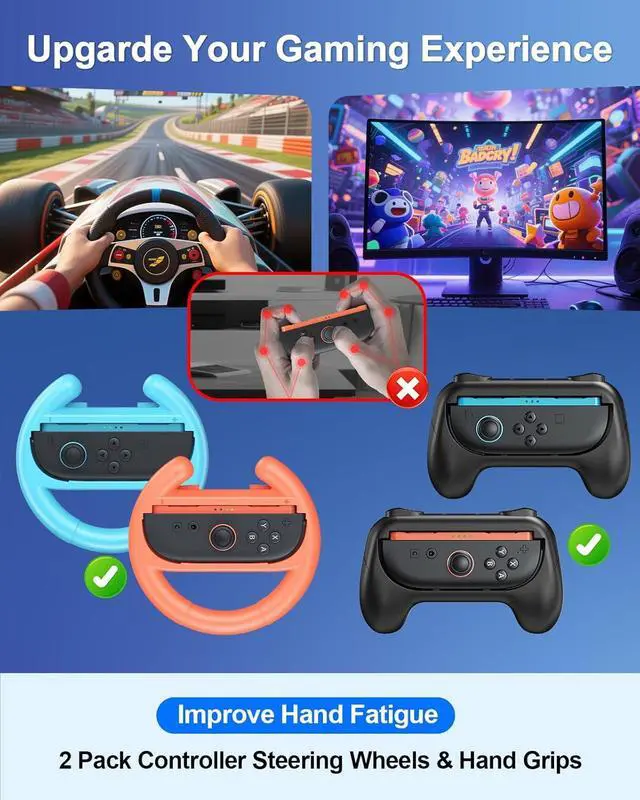 Kickstand and Ergonomic Grip: Enhance gameplay and comfort with hand grip and steering wheels for Mario Kart! Adjustable Stand with multi-angle stand for flexible viewing. Massive 23+2 game card boxes store your entire library with a compact case holding 23 game cards and 2 SD card