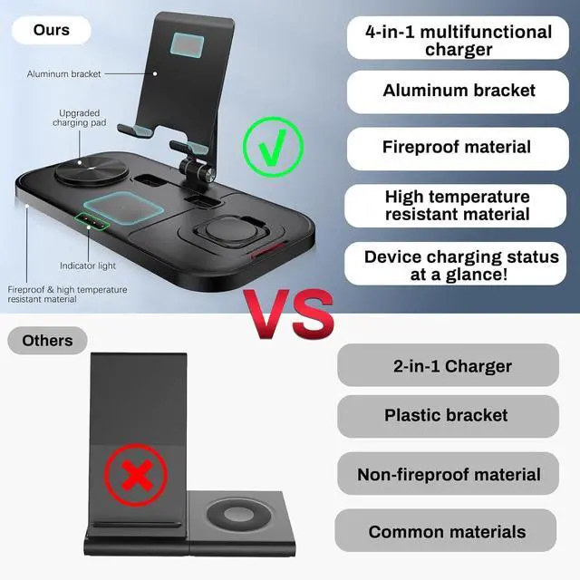 Foldable Wireless Charger- The wireless charging pad adopted foldable design on tablet holder, making it easier to put in bag or luggage. You don't have to take several cables and adapters to travel or business trip, let this all-in-one charging charging station lighten your luggage, save more space! Creative as Christmas gift/Thanksgiving gifts/birthday present/valentine's gift/father's day gift, etc