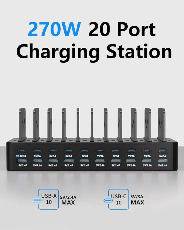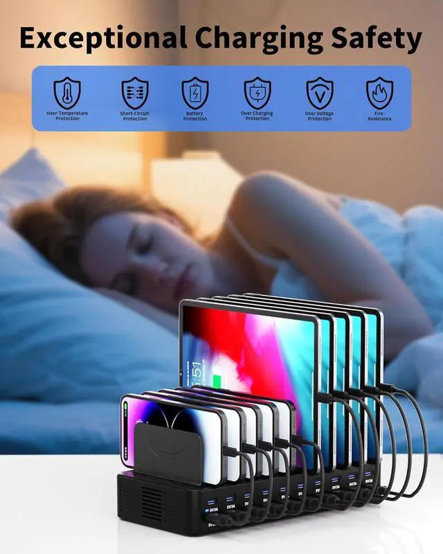 Integrated Cable EcosystemThis charger station includes 10 premium mixed USB cables (2× USB-C to for iPhone/iPad, 2× USB-C to USB-C, 2× USB-A to for iPhone/iPad, 2× USB-A to USB-C, 2× USB-A to Micro-USB), eliminating the need for separate accessory purchases. Designed for universal compatibility, these cables support iOS, Android, tablets, wearables, and legacy devicesensuring every port powers your devices