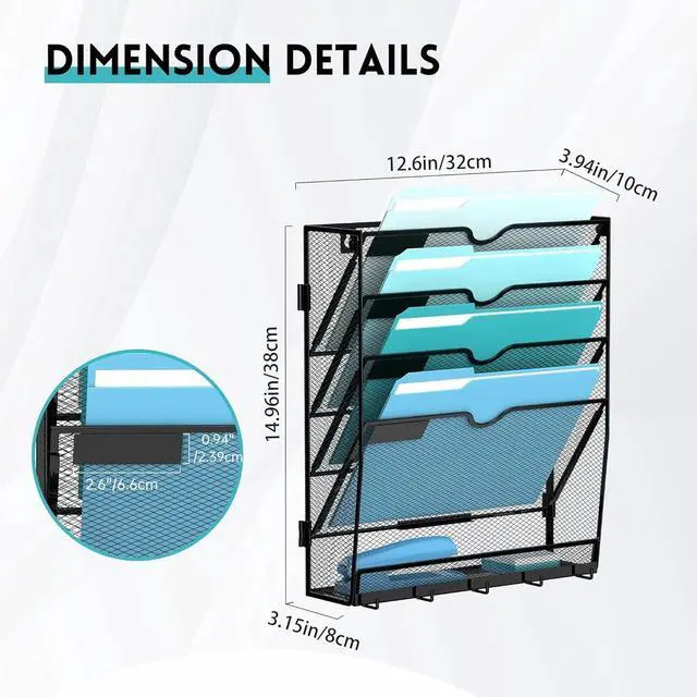 [Great Office Organizer] Dimensions in Inches: 12.6 L x 4.1 W x 15.1 H. This hanging wall file organizer will really help you combat clutter. In order to meet the needs of different customers, our wall file holders are available in a variety of styles such as 5-tier, 10-tier, 20-tier, and 21-tier, which are suitable for use in various areas.