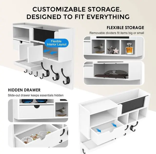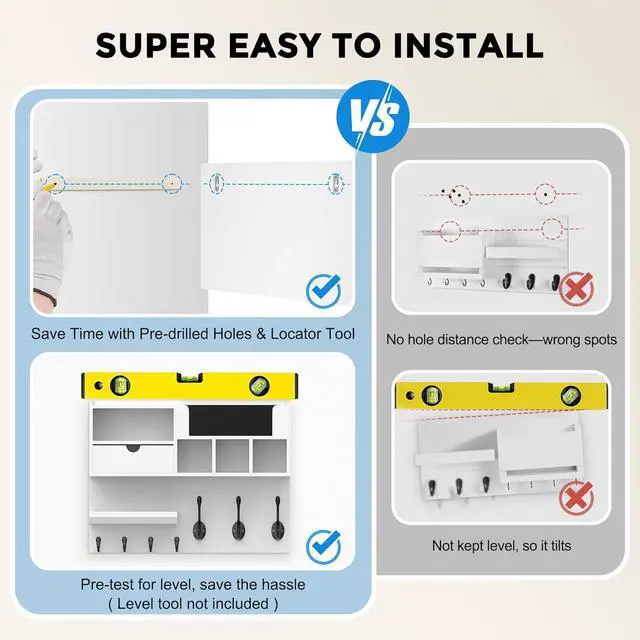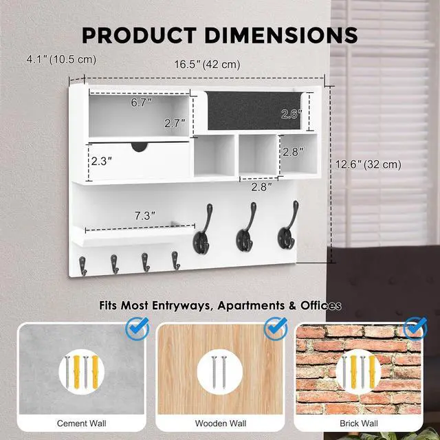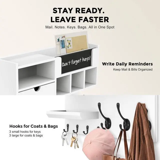 EASY WALL MOUNT INSTALLATION UP IN 20 MINUTESMounting hardware included. Clear step-by-step instructions mean most people have it on the wall in under 20 minutes no professional help needed. The compact yet spacious design fits standard entryways, hallways, apartments, and dorm rooms without overwhelming the space. White finish blends seamlessly with modern, farmhouse, and Scandinavian décor styles.