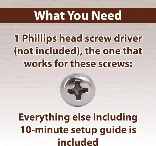 What you get - 1 fully assembled under the desk drawer, 8 screws used to secure the drawer to the desk, and 1 easy to follow 10-minute setup guide.