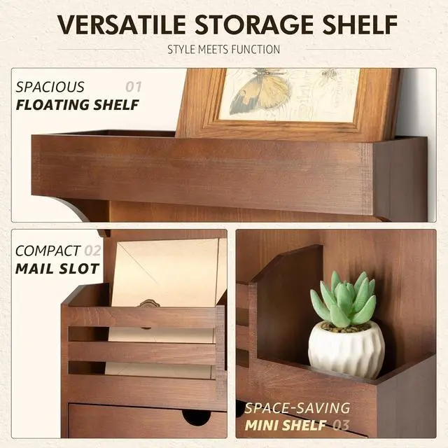 [BUILT TO LAST] Made from premium pine wood, this brown key holder for wall effortlessly combines durability with elegance. It doubles as a sleek shelf organizer, perfect for enhancing your farmhouse wall decor. With its solid construction, you can trust it to hold your essentials securely while adding a refined touch to your farmhouse decor!
