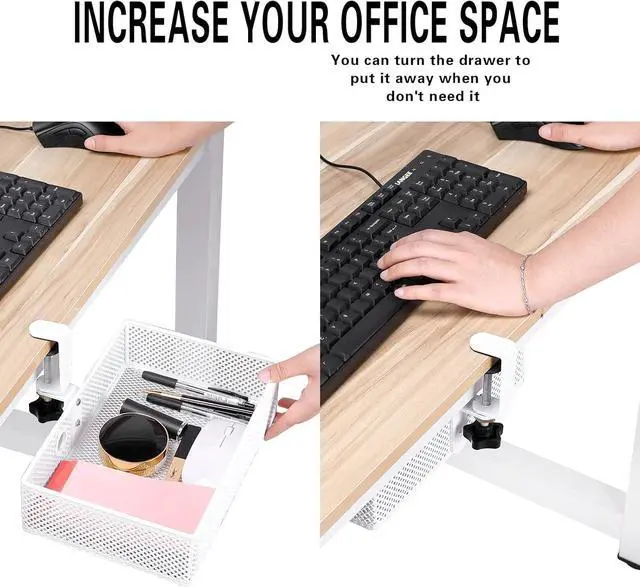 Simple installation: this storage box under the table is no need to punch holes or transform the desktop. No marks when it is removed or moved to another desktop. It is simple to install, just clamped on the edge of the table and tightened.