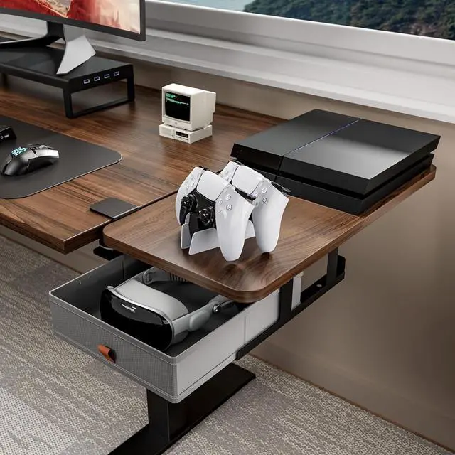 MULTIFUNCTIONAL USE AND OPTIONS: This desk extension is designed to hold office supplies, laptops, keyboards, mice, printers, and more. It works as a desk armrest, shelf, desk extension, keyboard and mouse tray or equipment stand. Available in three colors (black, white, and walnut) and two sizes (medium and large), it meets various aesthetic and functional needs for different workstation setups.