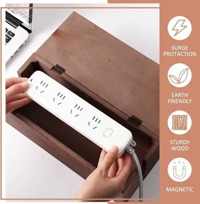 Quality Construction Meets Multi Functional Design: the wire management box is constructed from robust and water resistant walnut wood that is not just lightweight and flexible but also features a stunning texture that easy to care, it's beautiful and practical, now that's what we call smart designing