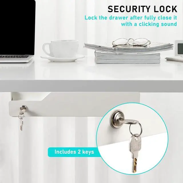 • Secure Privacy & Document Protection Keep your sensitive documents, personal electronics, and valuables safe from prying eyes. This under-desk drawer features a sturdy integrated lock with two keys, making it the ultimate privacy solution for shared offices, co-working spaces, or home offices with kids around. Protect your Pad, passport, and confidential files with peace of mind.