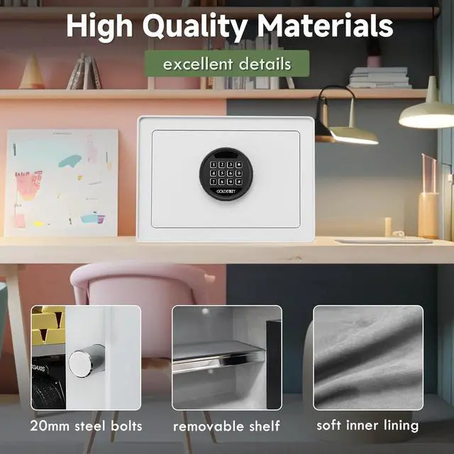 Strength & HardnessCrafted from high-strength SPCC steel, this safe box boasts superior hardness and strength, ensuring exceptional resistance to corrosion and impact. The sturdy construction, reinforced with two 20mm thick door bolts, offers robust protection against break-ins, giving you peace of mind for your valuables.