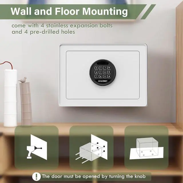 Easy InstallationDesigned for hassle-free setup, the safe includes 4 pre-drilled mounting holes and 4 high-strength steel bolts, allowing secure wall or floor mounting in your home, office, or dorm. The compact design integrates seamlessly into any environment.