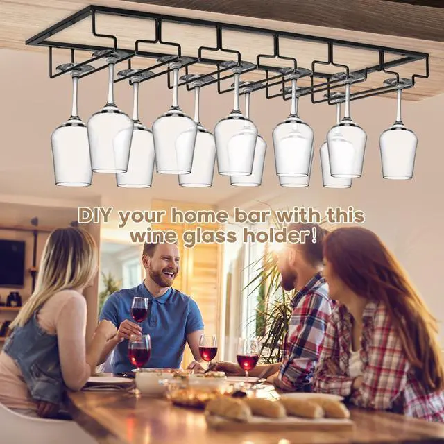 [Durable and Rustproof] - This glasses hanger rack is made of high-quality iron with black coating, sturdy enough, increasing durability of this rack and prevent the rack from oxidizing and rusting. There is no worry about affecting beauty of your kitchen or bar. This rack is beautiful, useful, easy to clean and service for a long life time.