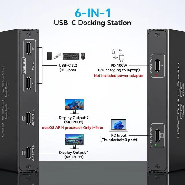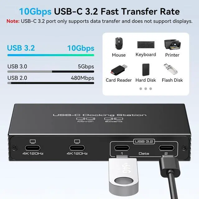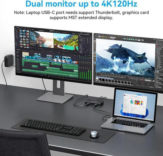 4K 120Hz Dual Monitor: The Type C hub for laptop supports simultaneous output of 4K 120Hz ultra-high-definition video, allowing you to enjoy crystal-clear movie-quality video effects. Please ensure that the laptop, monitor, and connected USB-C cable all support 4K 120Hz, and that all cables are no longer than 1.5 metres in length to ensure proper transmission of 4K 120Hz images.