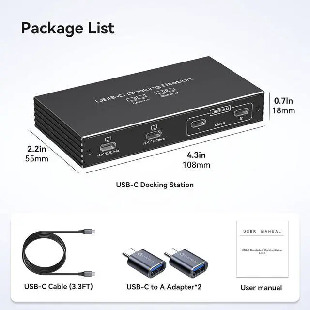 Reliable After Sales Service: You will receive a USBC to USBC hub*1, Type C to C cable*1, USB C to A adapter*2, and instruction manual*1. We offer a 1-year after-sales service guarantee. If you encounter any problems during use, please contact our after-sales service team via Amazon at any time, and we will resolve your issue within 24 hours