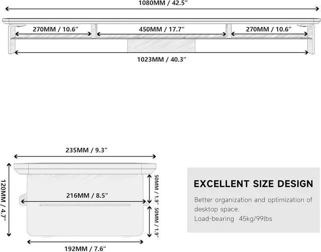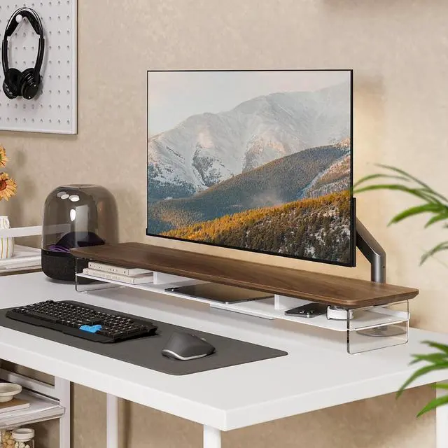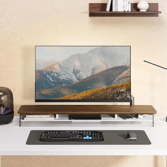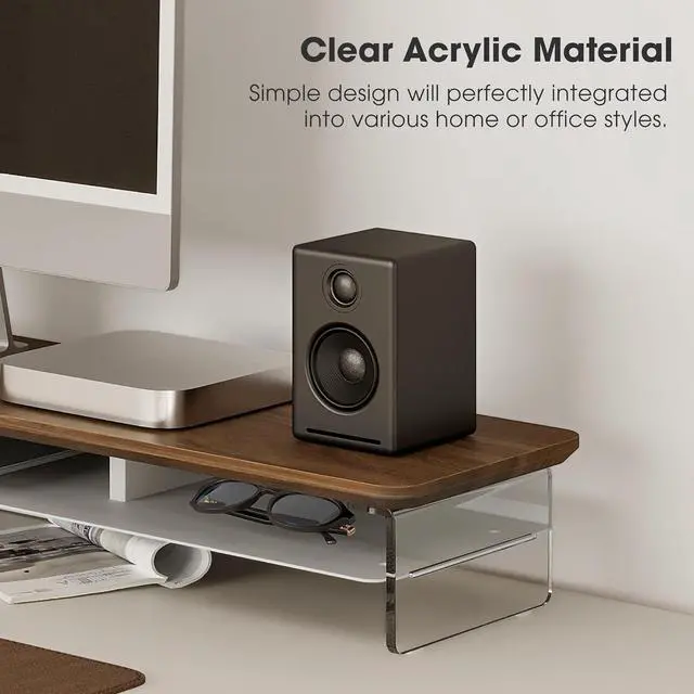 Protect Your Cervical Spine & Eyes: Acrylic monitor stand can raise your desktop by 4.7 inches to adjust to your eye level, reducing pressure on your neck and eyes.