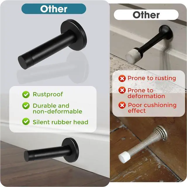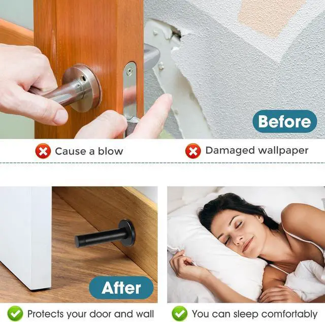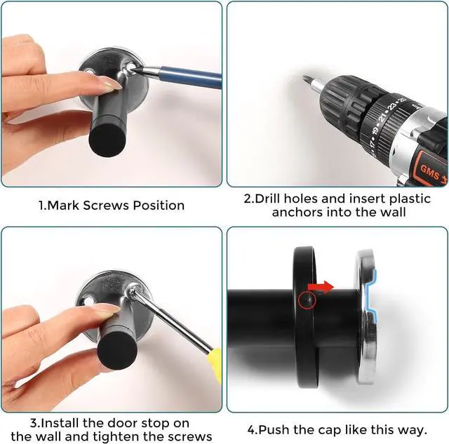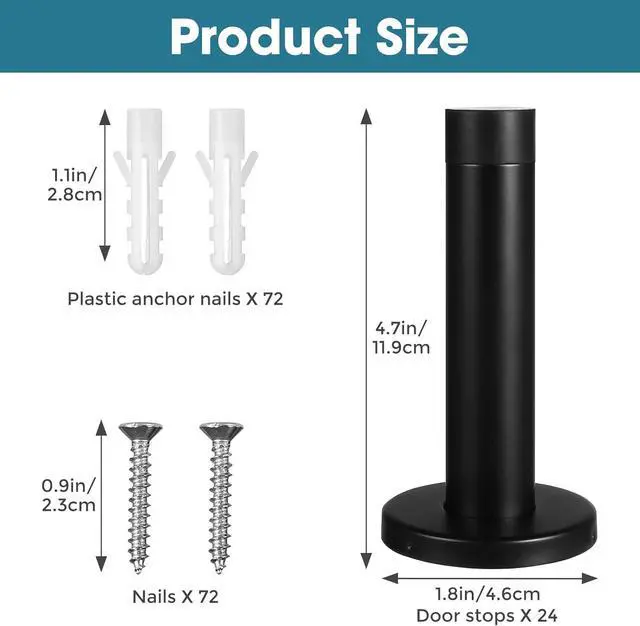 Easy Wall Mount Installation Includes all necessary hardware for quick installation. Simply mount with provided screws and anchors onto walls. Each stopper measures 3.5 inches, providing optimal protection for doors in various settings