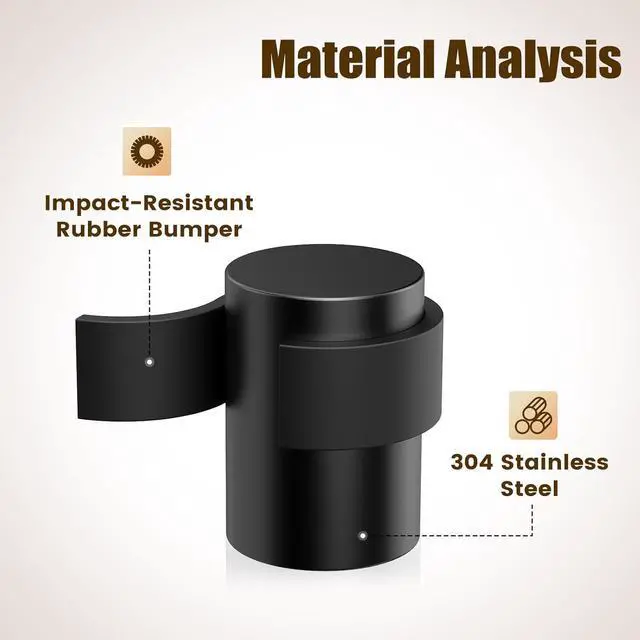 Premium door stopper engineered for reliable door control and surface protection. Constructed with high-quality rubber and durable metal, it features a non-slip base that grips floors firmly without causing scratches. The heavy-duty design delivers strong holding power, effectively preventing door knobs from damaging walls when doors slam shut or are blown open by wind. Versatile for various scenariosperfectly suited for homes, offices, bedrooms, and commercial spaces. Supports both floor-mount and wall-mount installations, with an adjustable structure to precisely fit different door gaps. Its sleek appearance blends seamlessly with diverse decor styles, while the scratch-resistant surface fully protects walls, floors, and door knobs from damage. Reusable and highly durable, it reliably meets daily usage needs, serving as a practical solution to enhance space safety, reduce door-closing noise, and extend the lifespan of doors and walls.