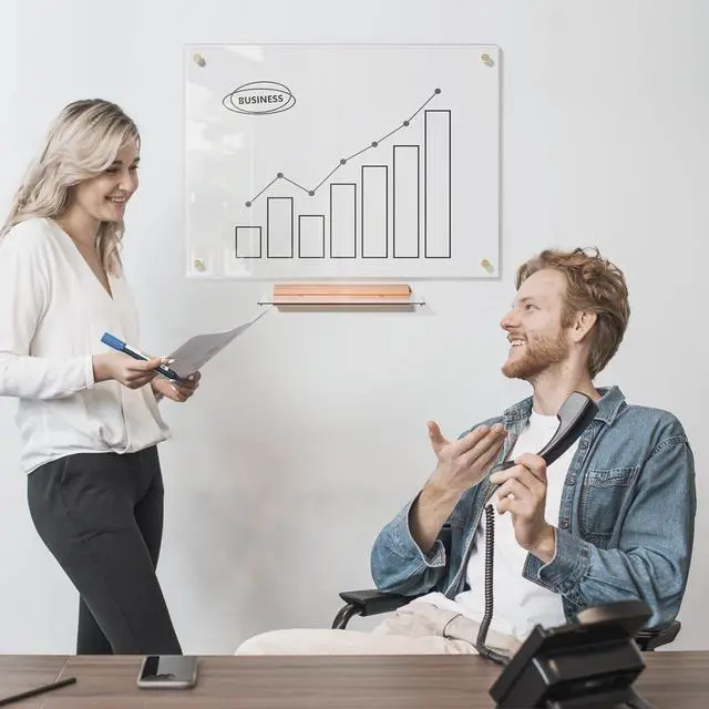 Easy & Flexible Installation I This glass whiteboard size 17x23 including a solid wood based floating glass tray, holds markers & erasers effortlessly. Vertical/horizontal mount flexibility with included template and hardware, installs in 10 minutes without professional help.