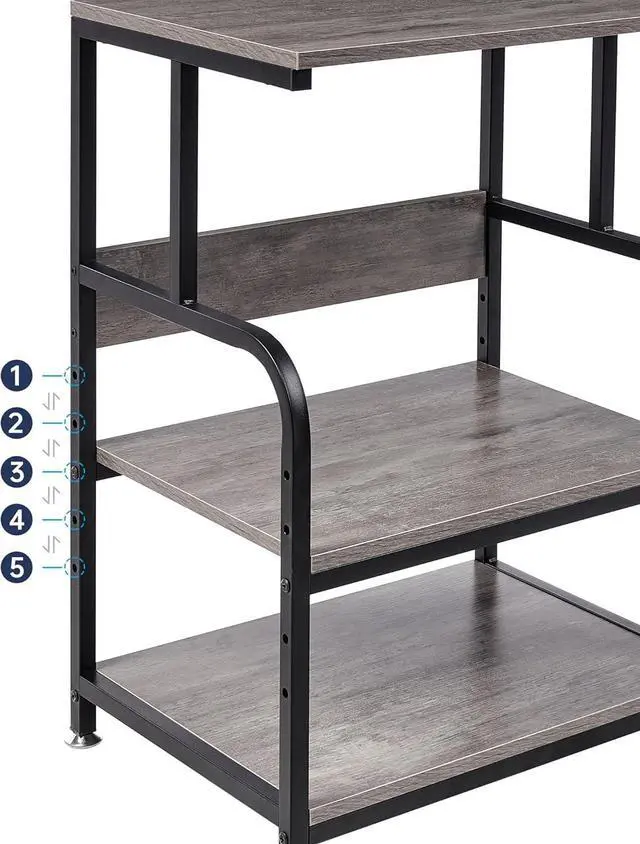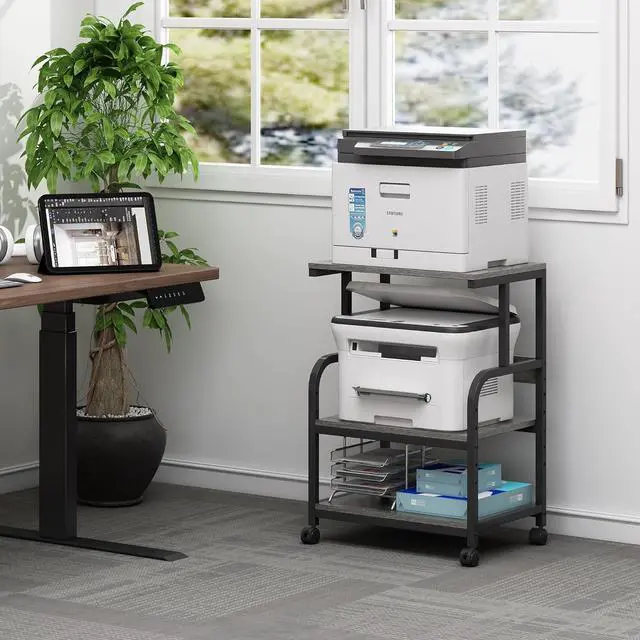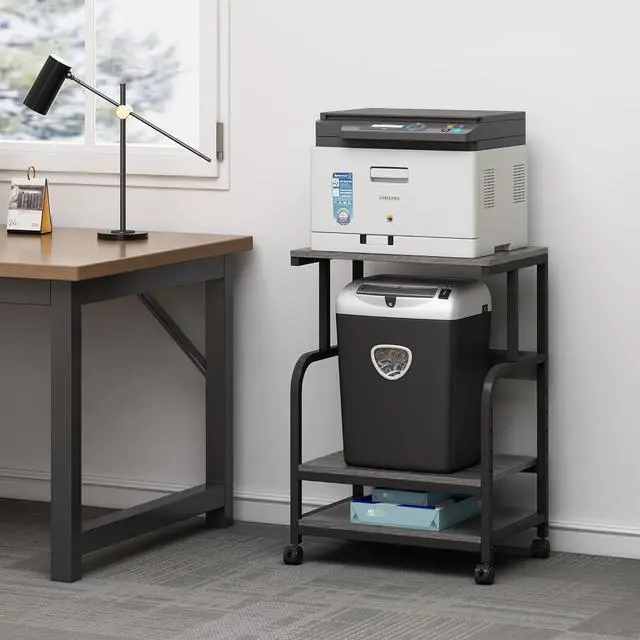 Height AdjustableThe middle shelf of this printer table is height adjustable with 5 levels, allowing you to customize the space between top and middle shelf with clear height 13.3 in, 15.3 in, 17.2 in, 19.2 in or 21.1 in to accommodate differently sized items. Experience the flexibility and versatility of customizable storage options with this innovative printer stand.