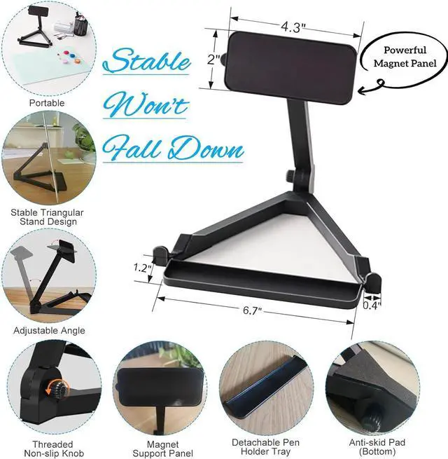 REMOVABLE STAND UPGRADE & REINFORCEMENT - Triangular stable structure and anti-slip design, black strong magnet panel can attract the magnetic glass board. The bracket is convenient for adjusting the comfortable angle. Stable stand doesn't wobble on the tabletop, the easel also doesn't slide and fall down, just adjust it and tighten it to stay
