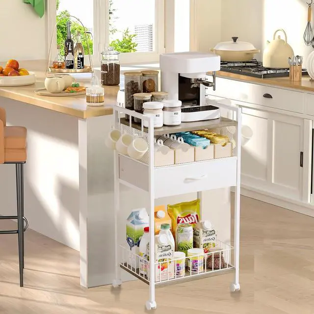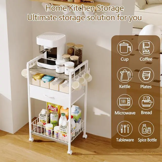 Coffee bar cabinet with storage drawer.