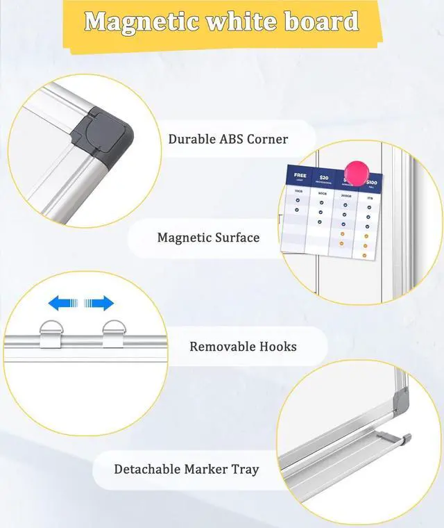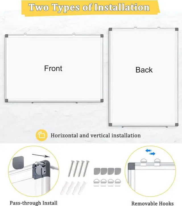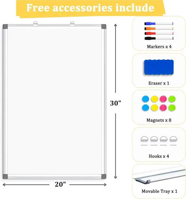 One-stop shopping-- The 30" x 20" Magnetic whiteboard set comes with 4 magnetic dry erase markers, 8 magnets, 1 movable tray, 1 dry eraser and mounting hardware. You can enjoy a worry-free shopping experience. If any problem happens in your shopping process, contact us without hesitation. Well try our best to tackle your difficulties.
