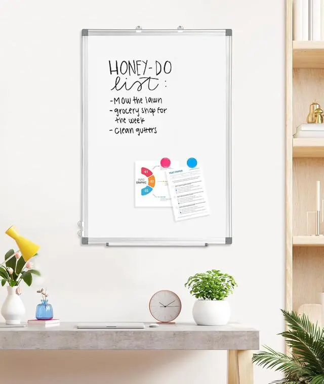 Multi-Use Whiteboard-- This versatile whiteboard serves various purposes, making it ideal for home, school, office, and even kitchen use. With its magnetic surface, you can easily attach important notes, photos, or memos, enhancing organization and productivity in any setting.