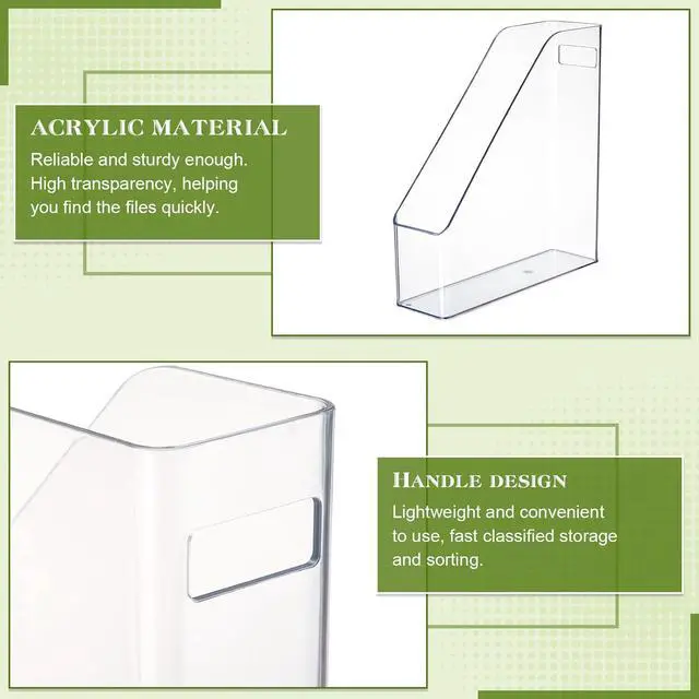 Stable: these magazine file holders are made of acrylic material, reliable and sturdy enough, without pointed corners, and the bottom is equipped with rubber pads to avoid sliding; High transparency and good visibility add elegance and charm to your desktops