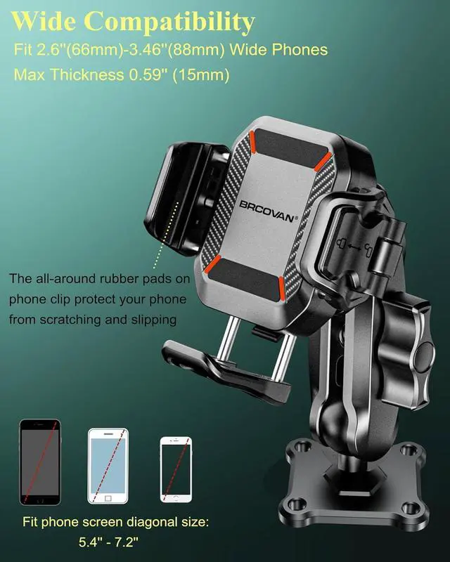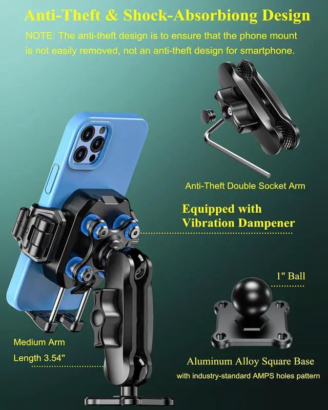 Easy To Install: The square mounting base consists of a B size 1'' TPU ball connected to a 2" x 1.69" square plate. The square plate features industry-standard AMPS hole pattern with four pre-drilled holes at each corner. Suitable for mounting on the dashboard of a car boat truck UTV golf cart. If your motorcycle ATV snowmobile e-bike scooter has a place to secure this round base, you can also try mounting this phone holder to those vehicles