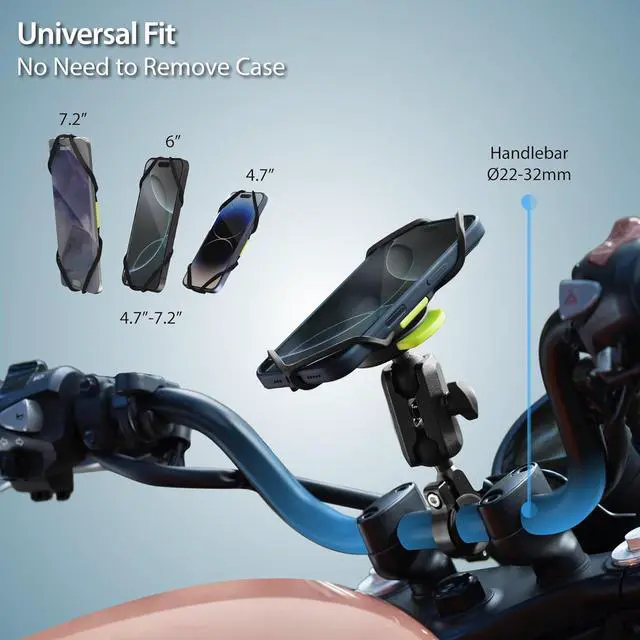Universal Fit & Wide CompatibilityAdjustable mount fits 4.77. 2 smartphones, including iPhone,, Google Pixel and more, with a handlebar clamp for 22-32mm bars.