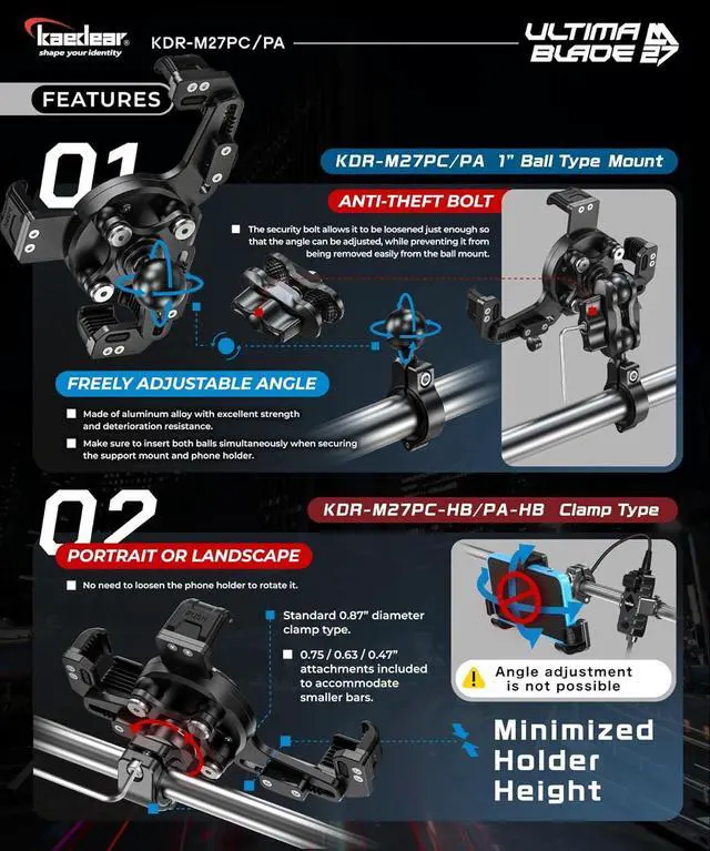Recommendation: For safety, use a strap or carabiner to secure the holder to the handlebar.