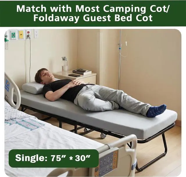 [Innovative Convenient Storage] Our cot mattress features an innovative and more convenient storage design. After rolling up the pad, simply secure it with the buckle straps and then tighten it with the cord, eliminating the hassle of struggling to roll it up or dealing with loose straps. Whether for outdoor camping or home storage, the storage process is made simple and efficient.