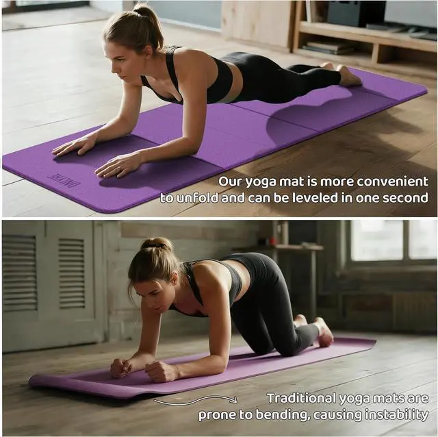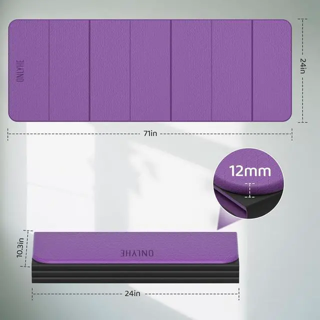Premium Dual-Color 7-Fold Yoga Mat Extra-large 72"x24"x 0.3" (185x61x 0.8 cm) size offers superior space for yoga/Pilates. Made of non-toxic TPE with dual-sided non-slip grip for stability on any surface. This yoga mat thick 0.3" cushioning protects joints during workouts and pairs perfectly with your pilates board for home workout. Instantly lies flat ideal for gym mats routines, home gym sessions, or outdoor fitness.