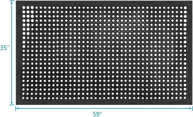 Large Heavy Duty Drainage Mat for Indoor Outdoor - Package comes with 1 large door mat - 59.06 x 35.43 - 0.31" thick, with large hexagonal holes help to reduce the amount of slippery liquids and oils left on the floor. Grease and water-resistant rubber help keep the entrance mat in place, especially when used in high-traffic areas.