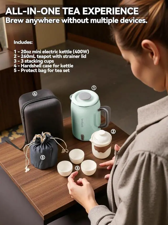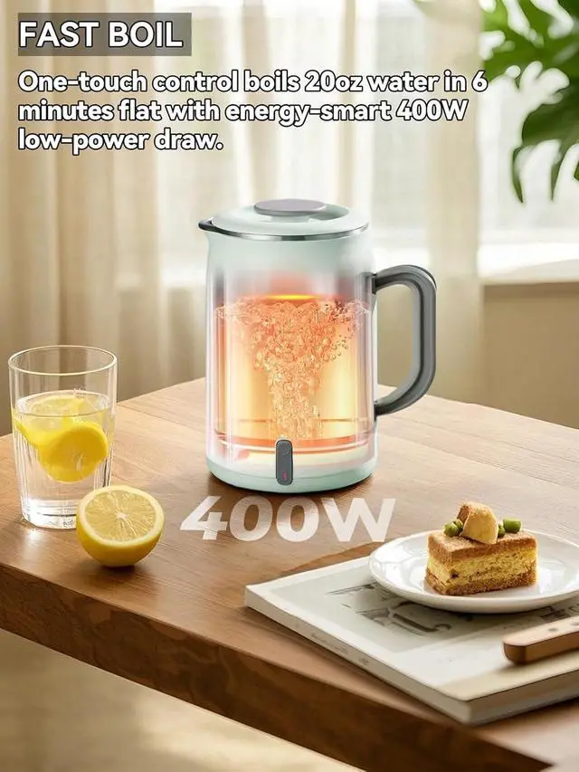 Rapid 400W Boiling & US Voltage: Boils water in 6 mins at 110V - perfect for small electric kettles for boiling water, consumes only 0.04 kWh per use (saves 50% energy vs 800W electric kettles)