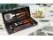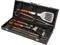 Take over the tailgate with 10-Piece Premium Grilling Set. This beautifully crafted grill tool set is built from durable stainless steel and paired with handcrafted Pakkawood handles. This complete grill tool set includes everything you need to master the grill, featuring a chefs spatula, tongs, fork, four skewers, a grill brush, and two replacement brush heads. Whether you're grilling steaks, veggies, or skewers, this grill set gives you control. The set stores in a leather tote thats perfect for on-the-go grilling at tailgates or cookouts. From backyards to campsites, this grill set brings the quality with you.