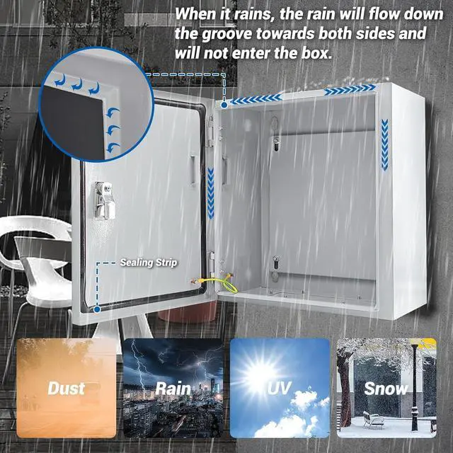 All-round waterproof and dustproof: Outdoor electrical box door frame adopts a groove waterproof design and waterproof rubber strips to form a strong seal, preventing rain, dust, and ultraviolet rays from entering, protecting the internal circuit from external influences. Whether it is a rainy and windy season or extreme weather, it can ensure that the interior of the electrical box is dry and safe.